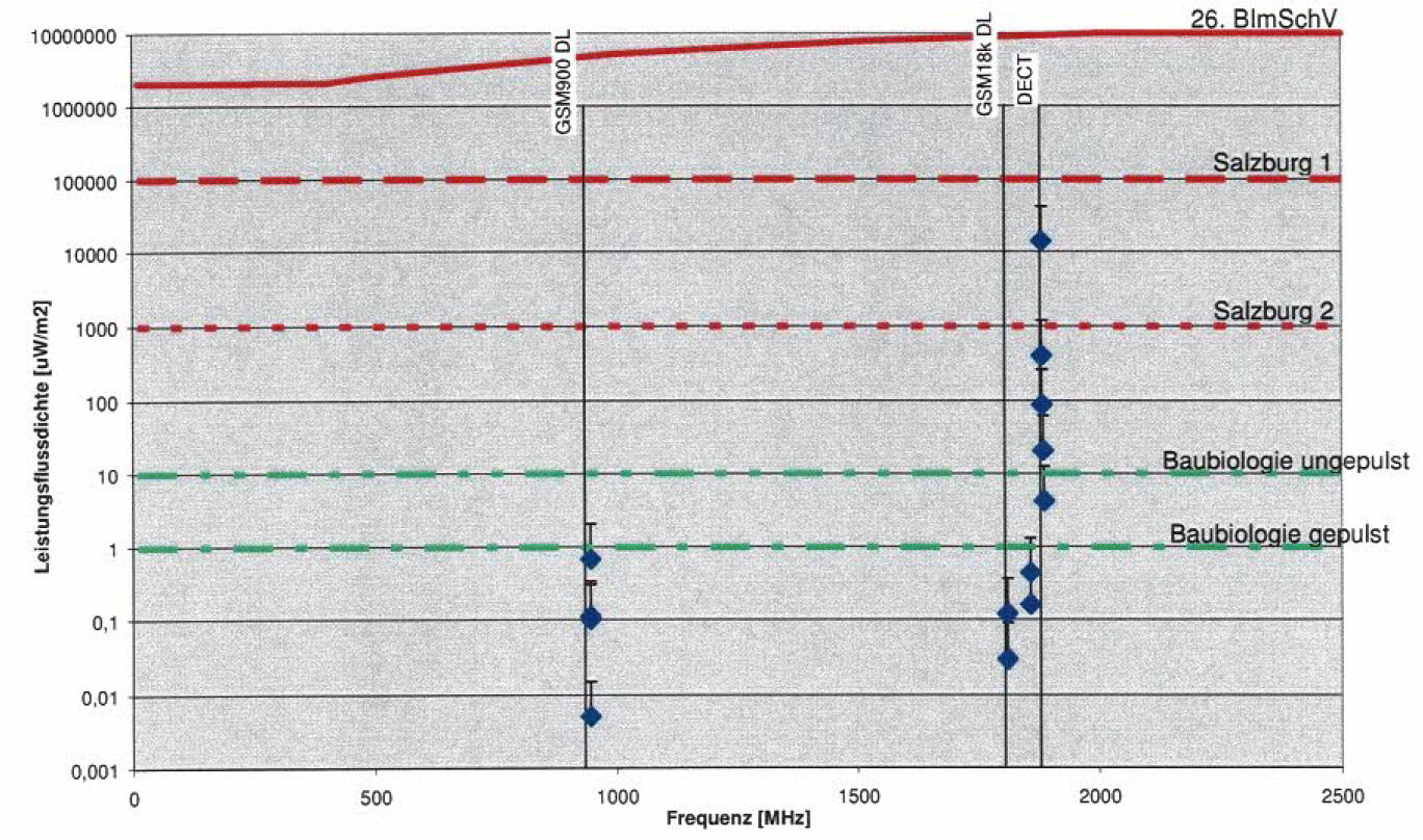 Vorsorgegrenzwerten der Baubiologie und Umweltschutzverbände. Exposition
